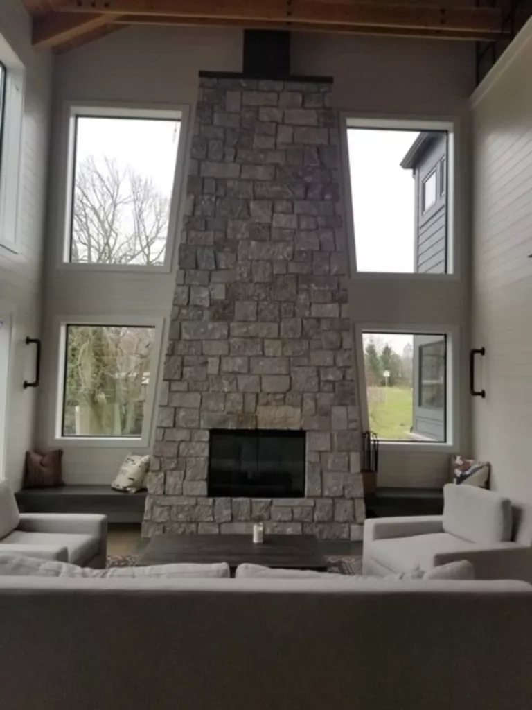 Fond Du Lac features a timeless blend of light and dark grays, ranging from creamy buffs to subtle ash tones with warm khaki undertones. The darker stones add contrast and depth, while the lighter stones provide balance, giving the wall a rustic yet refined appearance.