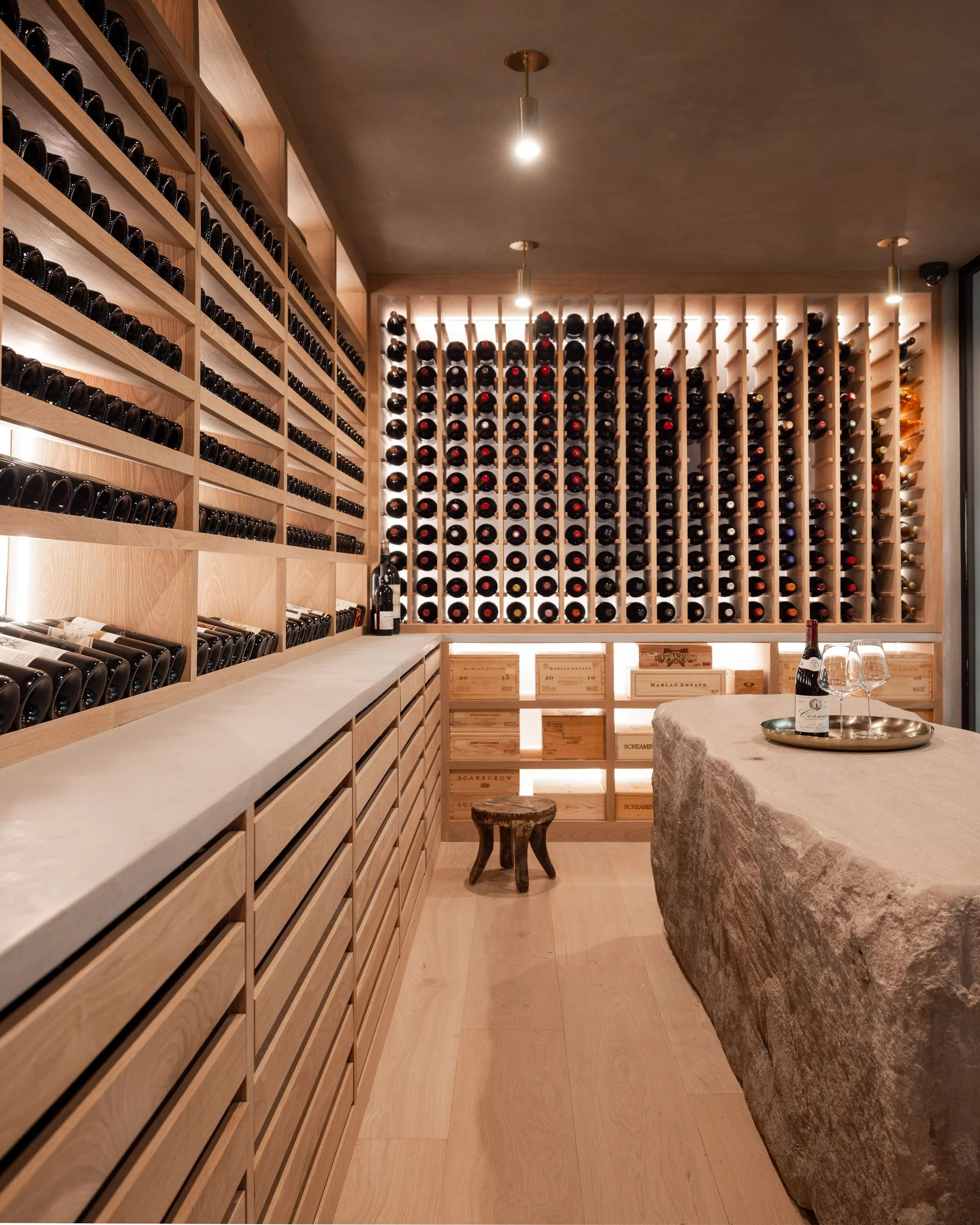 This wine table was crafted from a block of U.S. quarried limestone.